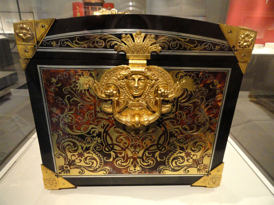 A casket by Andre Boulle. Even today, his name is associated with his own, instantly recognisable style of ornate marquetry. (source: Wikicommons)