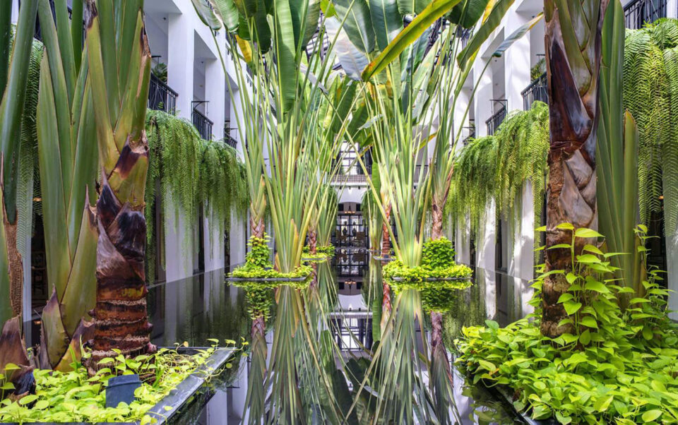 And it’s not just plants that you can bring inside. Why not have an indoor fountain or pond? This extravagant interior is the atrium of the Siam hotel in Bangkok. It features a narrow pool with enormous birds-of-paradise and banana palms beneath a steel and glass ceiling.
