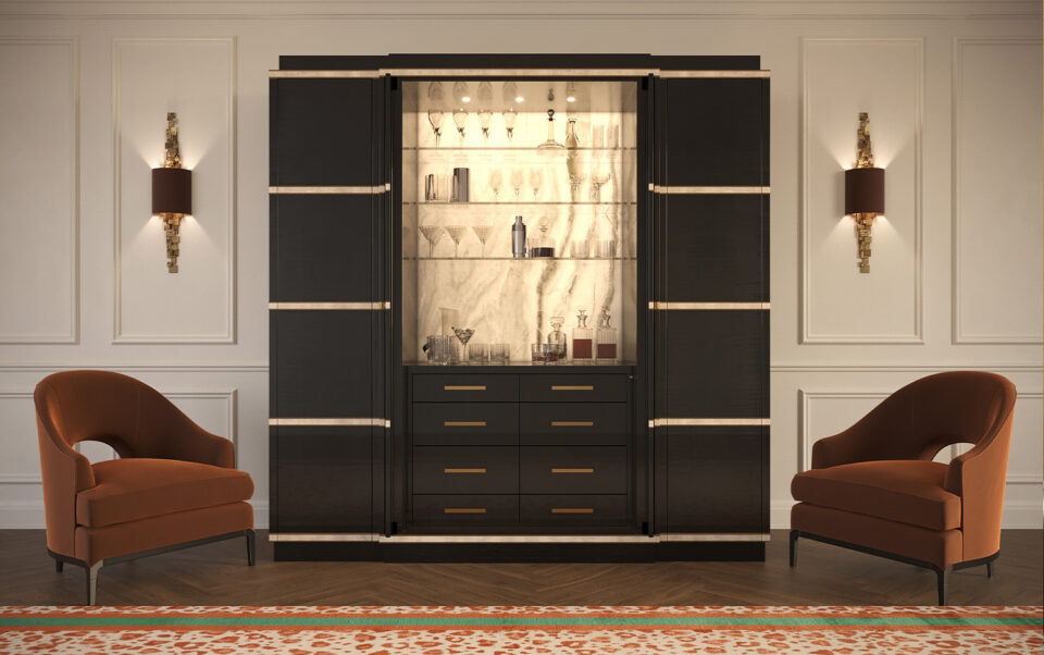 Opt for a drinks cabinet if you are short on space. The Galaxy Drinks Cabinet is elegant with its exotic and ethereal feel. Or there’s the Stellar Cabinet for a larger range of cocktail-making equipment.