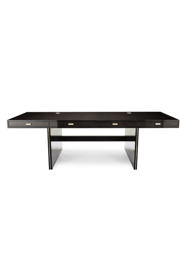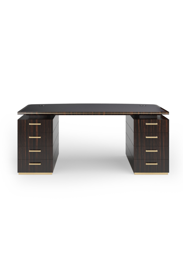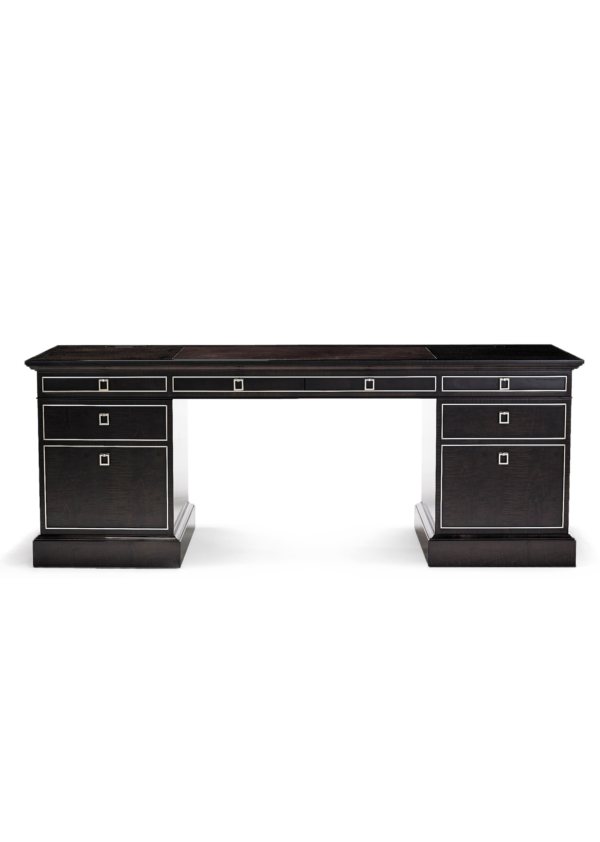 The desk is the focal point of the room and your chance to make a statement, setting the tone for the rest of the space. What atmosphere are you trying to create? Cosy and traditional? Or cool and contemporary? DAVIDSON’s Wellington Desk is the epitome of airy sophistication. Its clean-lined silhouette is ideal for encouraging a focused and calm mind. Ample storage allows the desk to meet all functional criteria while the high-gloss sycamore finish is hand-tinted to an impeccably smart tone of grey.