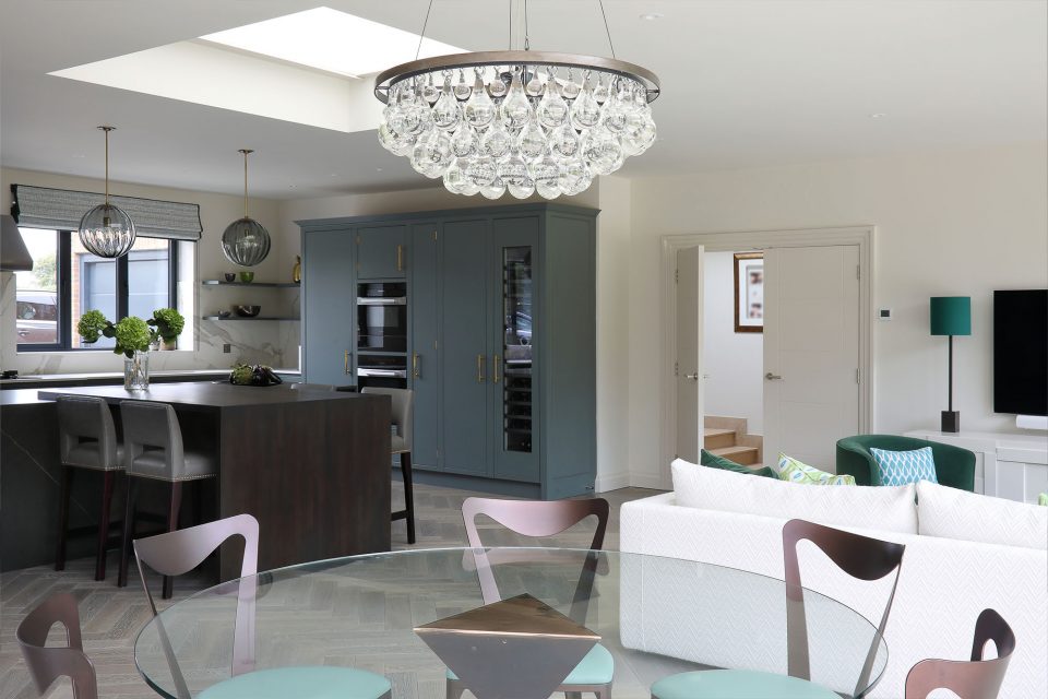 Cool greys, blues and browns tones flow throughout the home, enhancing its overall atmosphere and providing a subtle backdrop for the intricate design details to shine. From meticulously curated lighting fixtures to carefully selected decor accents, every aspect of the interior design has been thoughtfully considered to ensure a cohesive and captivating aesthetic. It’s the exquisite attention to detail that truly sets this contemporary Buckinghamshire home apart, elevating it to a realm of effortless elegance.