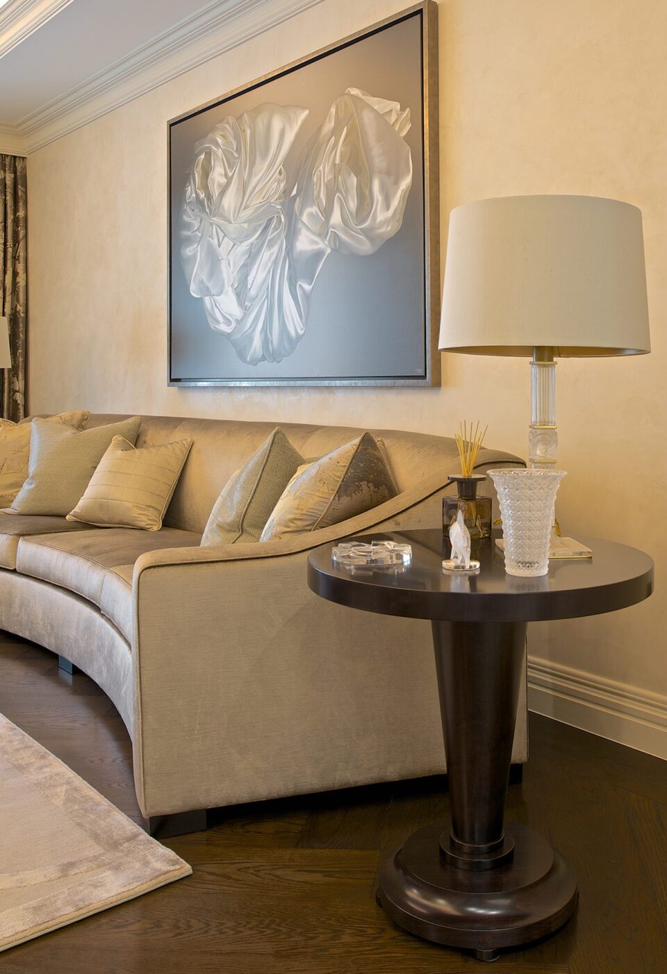 Sitting room decorating ideas range from monochromatic simplicity to whirlwinds of colour but those sitting room shades that are particularly on-trend right now are warm pastels and earth tones. Here at DAVIDSON, our favourite colours for sitting rooms are rich blues – such as Pantone’s Classic Blue – and emerald greens. If you like bright colours but aren’t confident enough to go the whole way, why not choose a single accent wall? This should be the wall that your eye is first drawn to when you enter the room. High ceilings are a great opportunity to splash out on fabulous wallpaper – one easy way to make your sitting room a truly memorable space. And what kind of flooring do you want? Most people go for either carpet or wood, whether that’s reclaimed oak or parquet. But in warmer climates, tiles can look wonderful, as can limestone slabs. Once the floor and colour have been chosen, you can think about style and aesthetics. Are you more of a minimalist or a maximalist? Do you err towards the traditional and classic or do you have a penchant for clean-lined contemporary cool? Go with your gut. If you’re drawn to eclectic and quirky interiors, follow your instinct. Or if sophisticated and streamlined is more your thing, then make that your vibe. Top tip: mix up the geometry. Combine rectilinear lines with soft and swooping curves. This will create balance and intrigue.