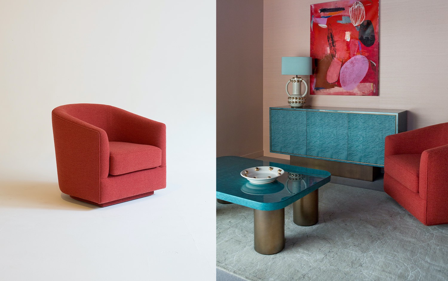 The Boulevard Armchair, the Malibu coffee table and the Palisades cabinet from DAVIDSON’s collaboration with Anna Standish.