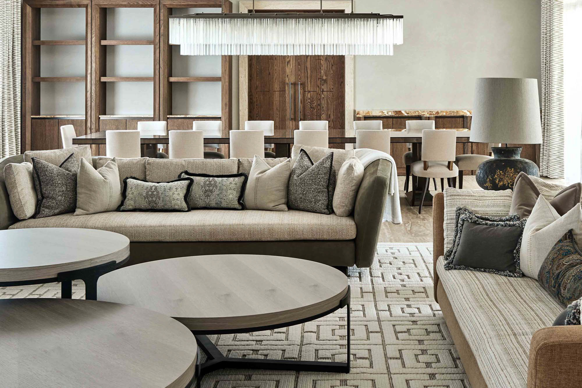 A combination of different seating options—armchairs, sofas, bar stools, and banquettes—allows for flexibility depending on the occasion, whether it’s a social gathering or a Netflix session.