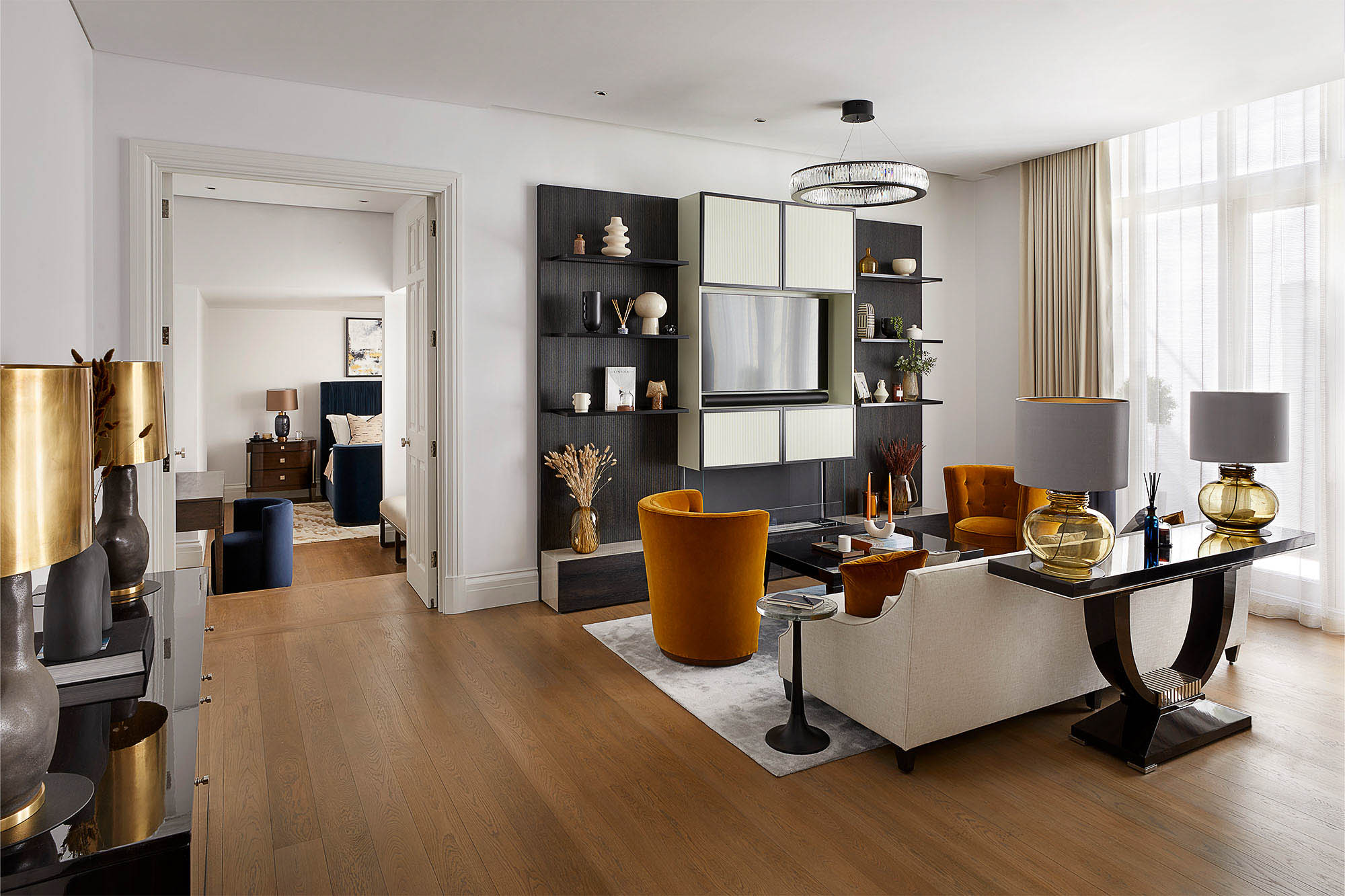 Nestled in the heart of London, The Cleveland, a 915 square foot luxury Pied-à-Terre, has recently undergone a complete transformation at the skilled hands of Interior Designer Morpheus & Co. Eager to craft a space radiating comfort and warmth across all seasons. The clients envisioned an ambience reminiscent of a luxurious hotel experience in the home. The Morpheus & Co design team approached this historic building with a keen sensitivity, preserving its original grandeur while creating the small luxury apartment.