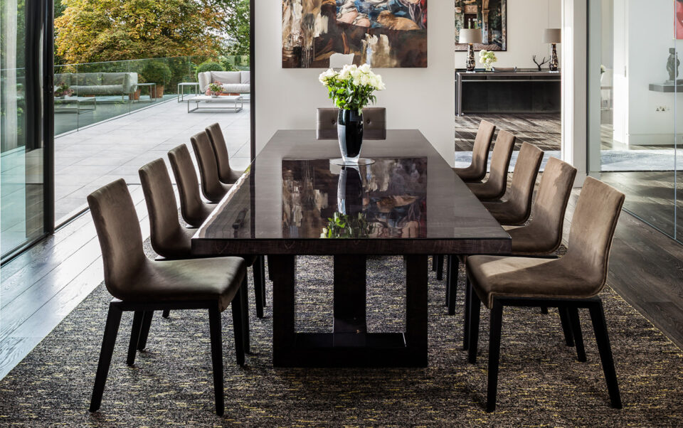 The Ovington Dining Table in high gloss sycamore dusk | Interior design project by Janine Stone