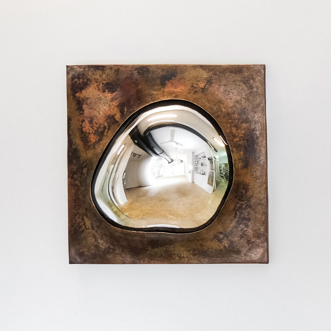 Exuding timeless sophistication, the Drop of Silver on Copper Mirror is a masterpiece of artisanal craftsmanship. Hand-blown glass and a silver mirror surface are encased in a striking copper frame, creating a harmonious balance of metallic tones. Its compact 49 x 49 cm size and 5 cm thickness make it a versatile addition to both modern and traditional spaces. Perfect as an accent piece or part of a curated gallery wall, this mirror captures light with unparalleled brilliance, embodying the essence of refined luxury.