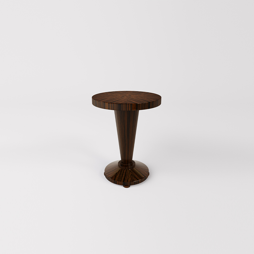 The Adelaide occasional table was originally designed in high-gloss sycamore black for a dark and lustrous look. The impressive radial pattern to the tabletop, with the veneer forming a perfect point in the centre, has been hand-laid by our skilled British craftsmen. This demonstration of superb technical ability showcases DAVIDSON’s unrivalled commitment to quality