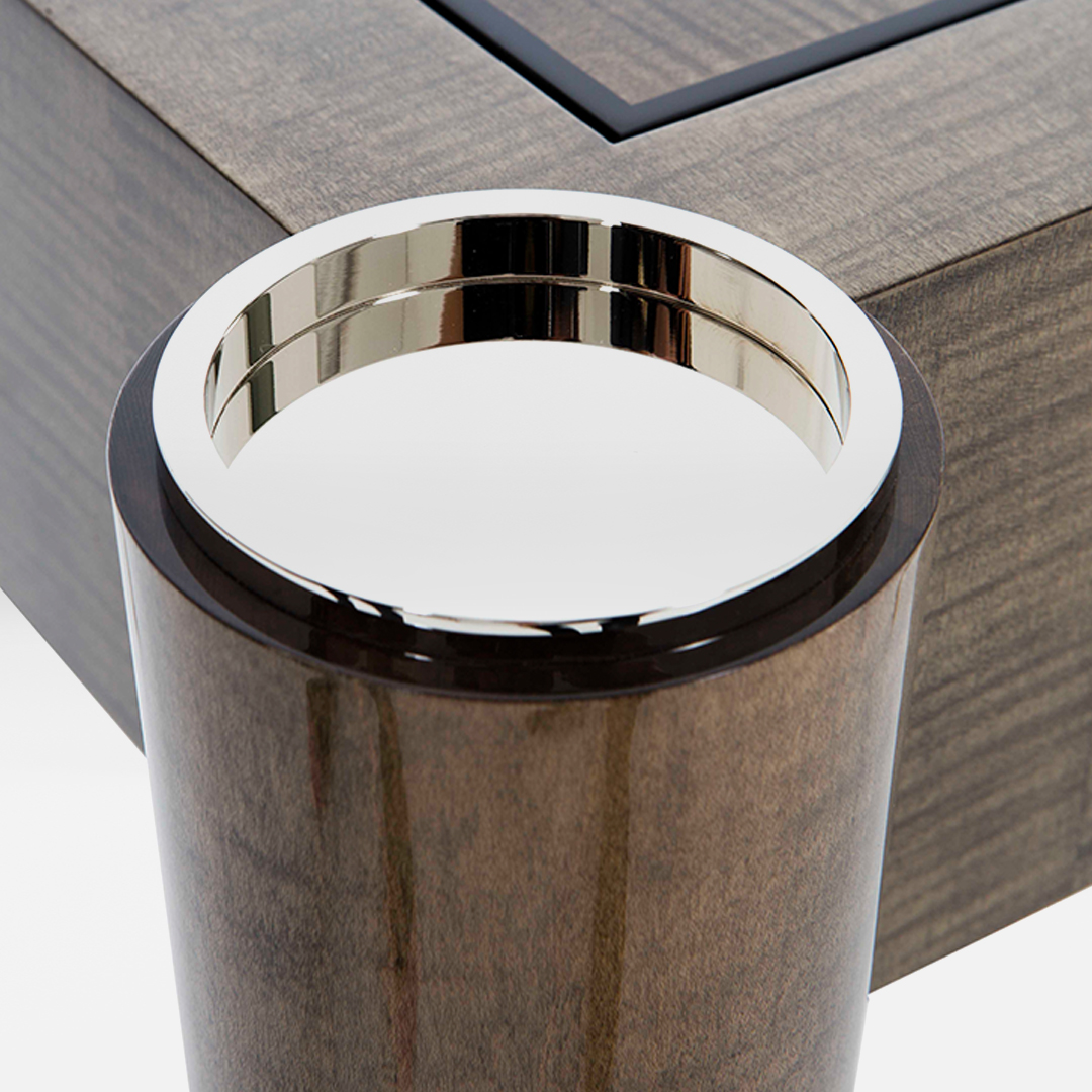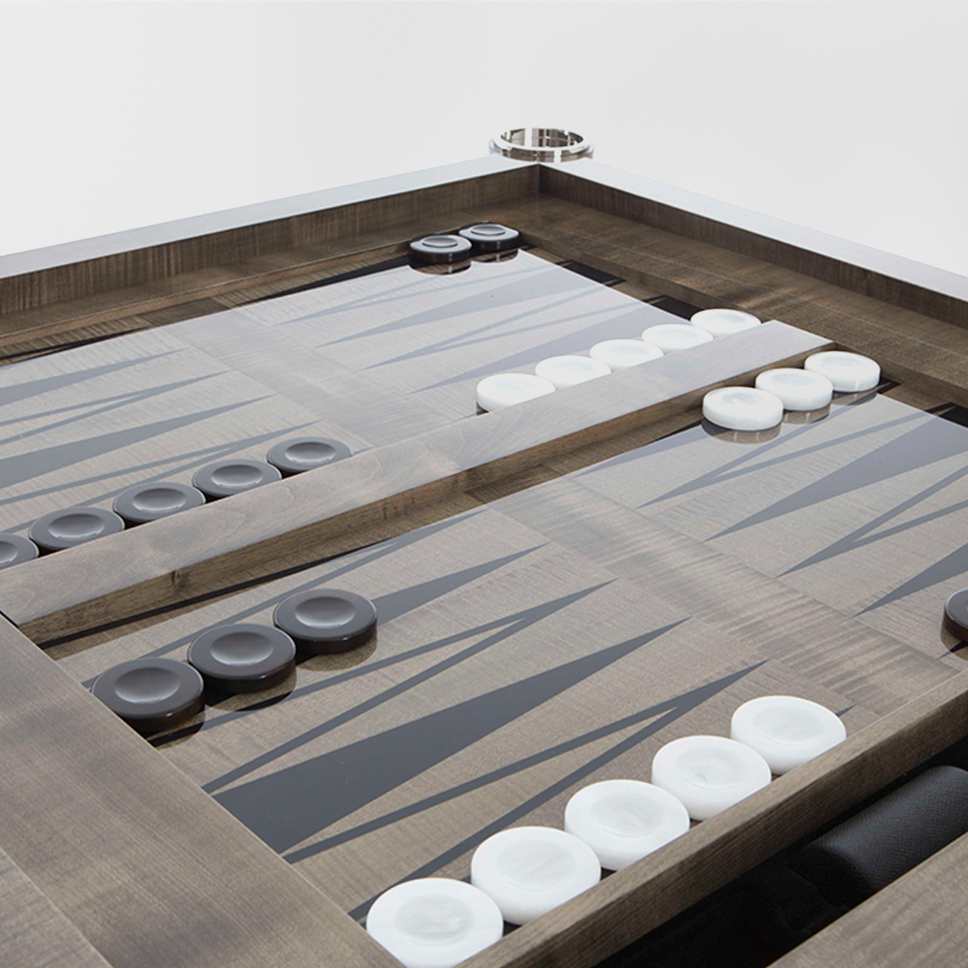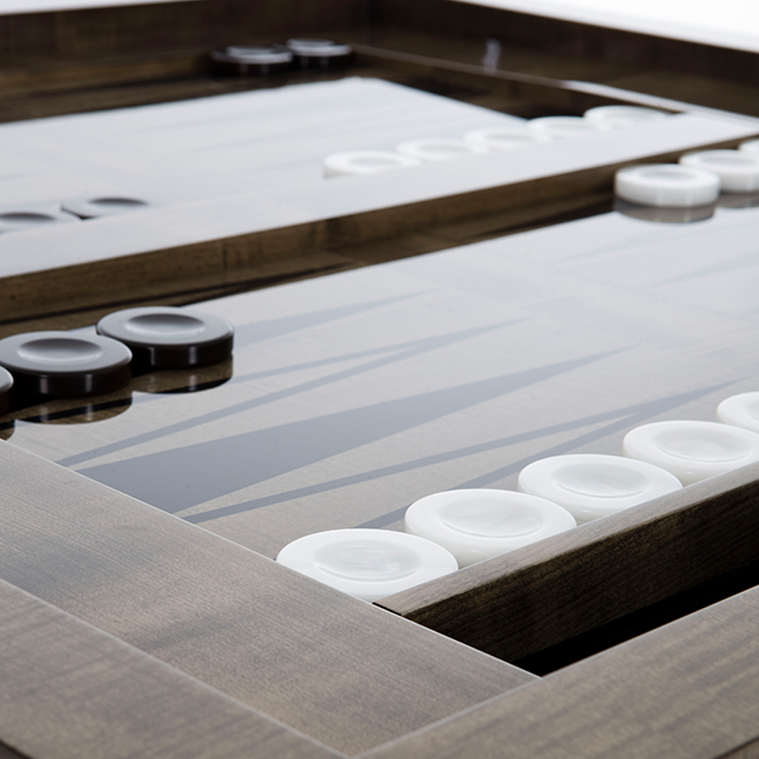 Exhibiting superlative British craftsmanship and a clever eye for design, the Aldridge is a sophisticated games table with an in-built chess, backgammon, and card-playing area. With the use of a smooth carved finger groove, the central chess table can be flipped over to reveal a baize playing surface for playing cards as well as an outstandingly crafted backgammon board when the central section is removed completely.