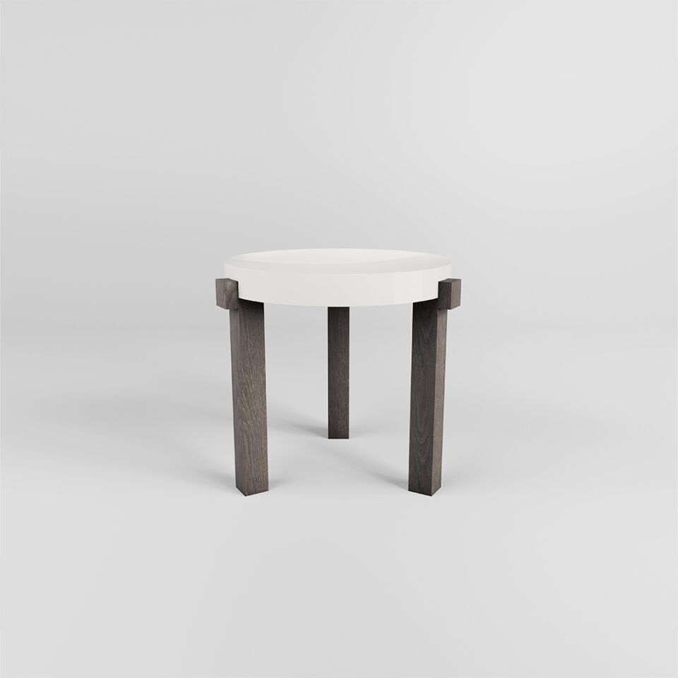 Sculptural yet understated, the Arcus Side Table is a study in modern elegance. Its semi-circular top, finished in a flawless high-gloss black, rests upon a gracefully stemmed base that tapers with architectural precision. A fluid wave of white wraps around the lower half of the form, its contrast lending rhythm and lightness to the silhouette. The interplay of monochrome, curve, and line creates a piece that is both refined and dramatic, a functional work of art designed to elevate any interior with its quiet yet undeniable presence.