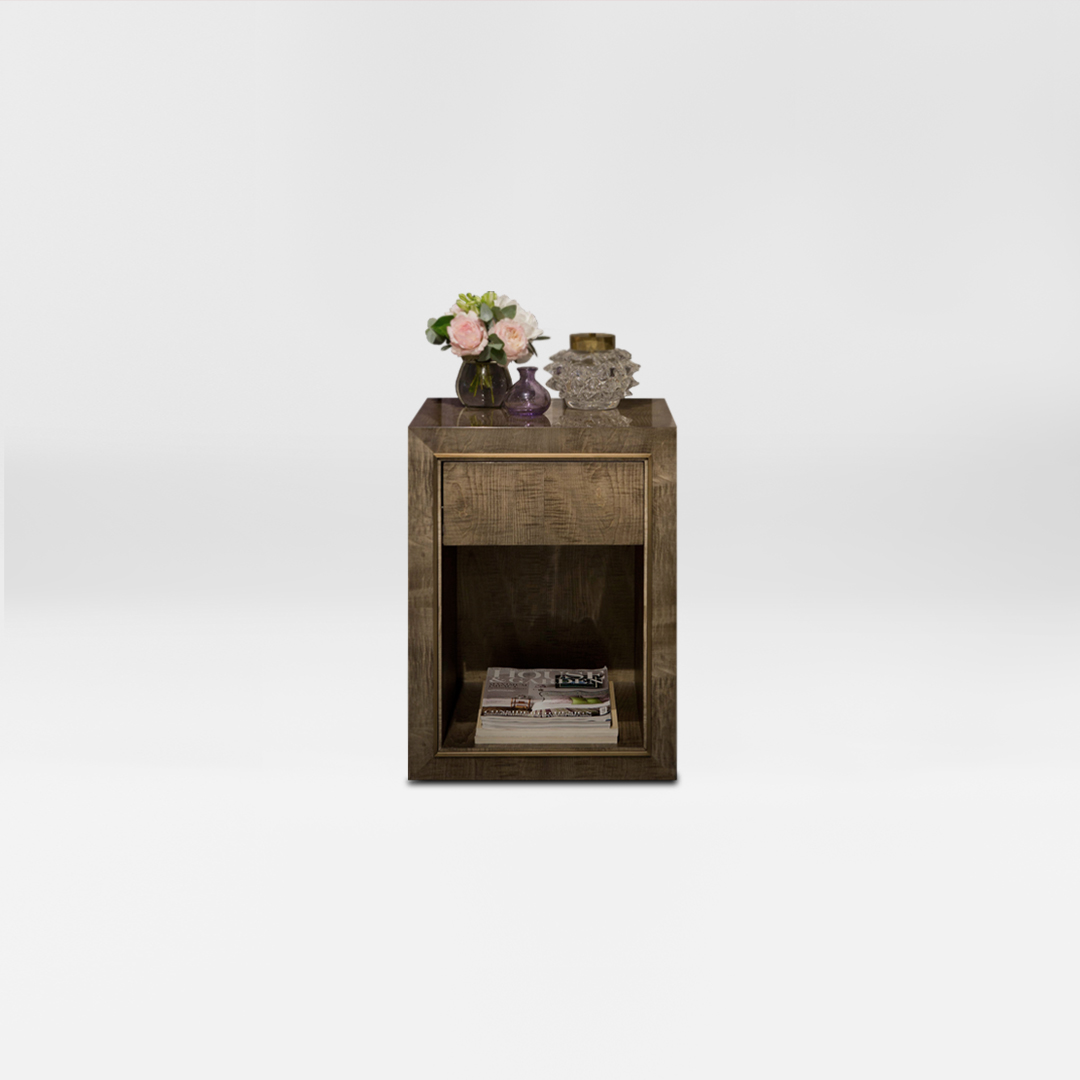 A bedside table that will sit beautifully in any elegant boudoir, the Bowery offers a rather contemporary, box-shaped silhouette that nevertheless conveys a timeless mood. With its original profile and luxurious finish, this stylish bedside bridges the gap between creative design and the prestige born of tradition.