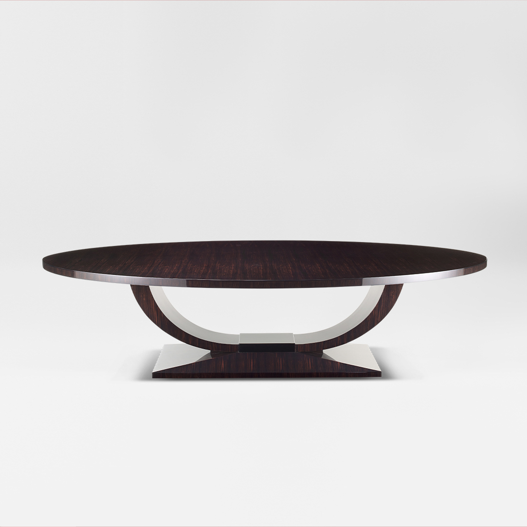A large deluxe dining table exuding the utmost style and comfort, the Ovington is designed with a sociable oval top that is perfect for entertaining.