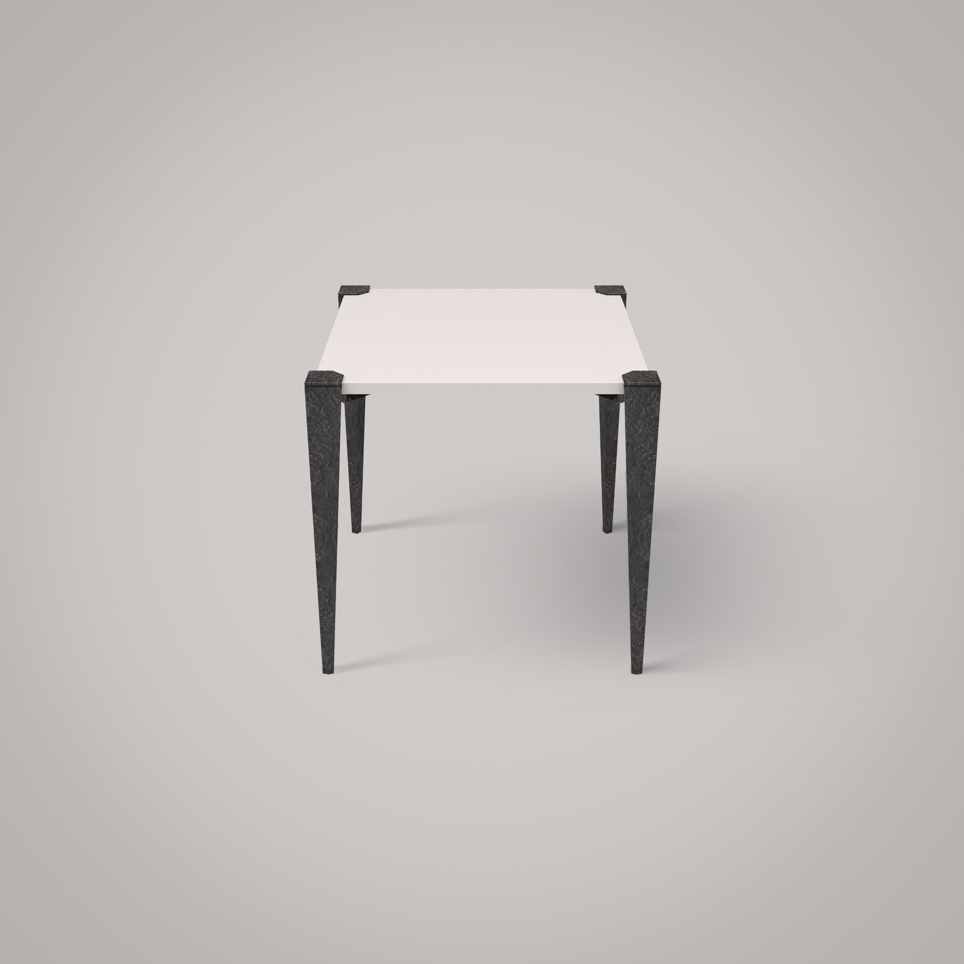 The Solstice Side Table radiates contemporary elegance with its clean lines and striking design. Featuring a square matte lacquer top, the table is supported by textured bronze resin legs, adding depth and character to its minimalist form. A versatile addition to any interior.