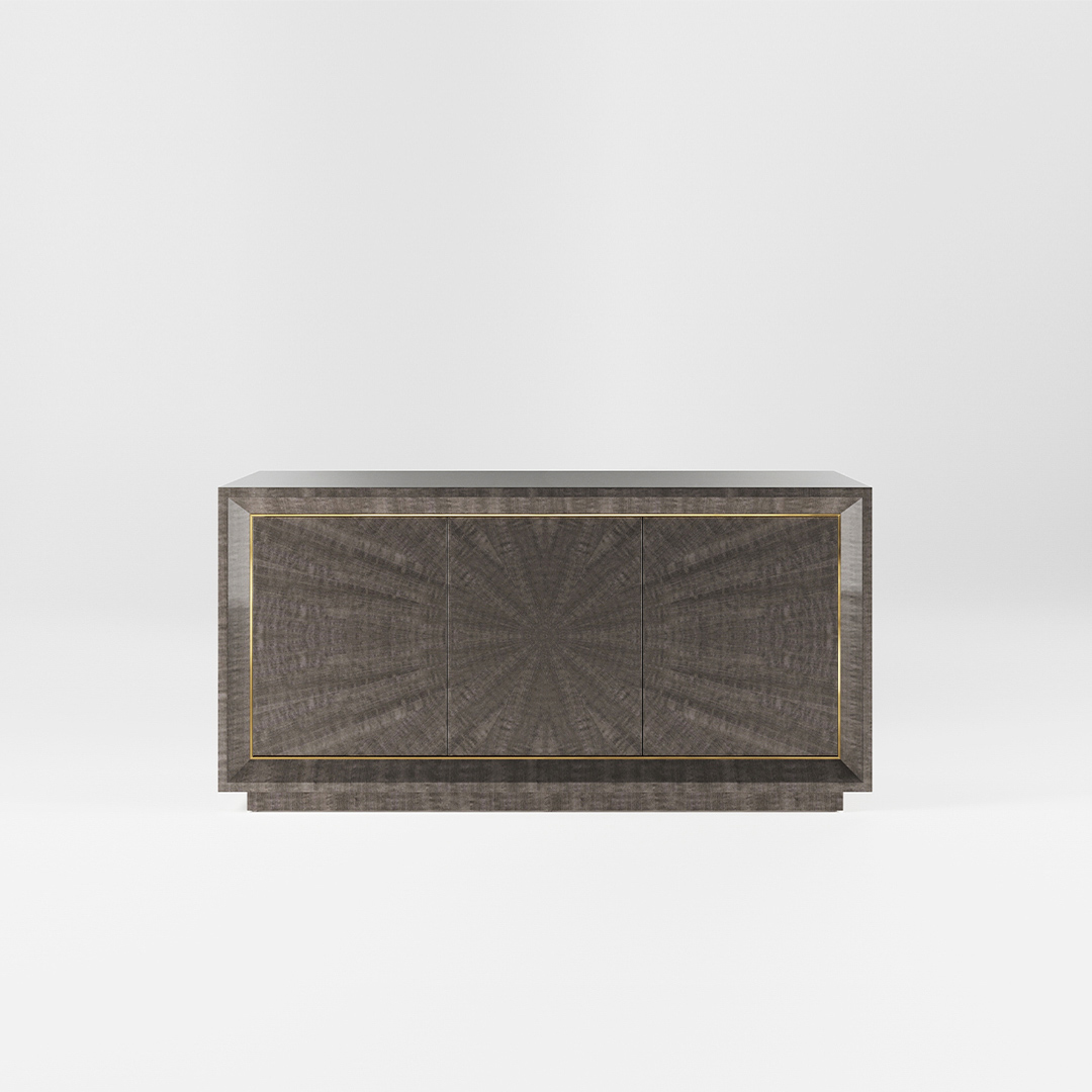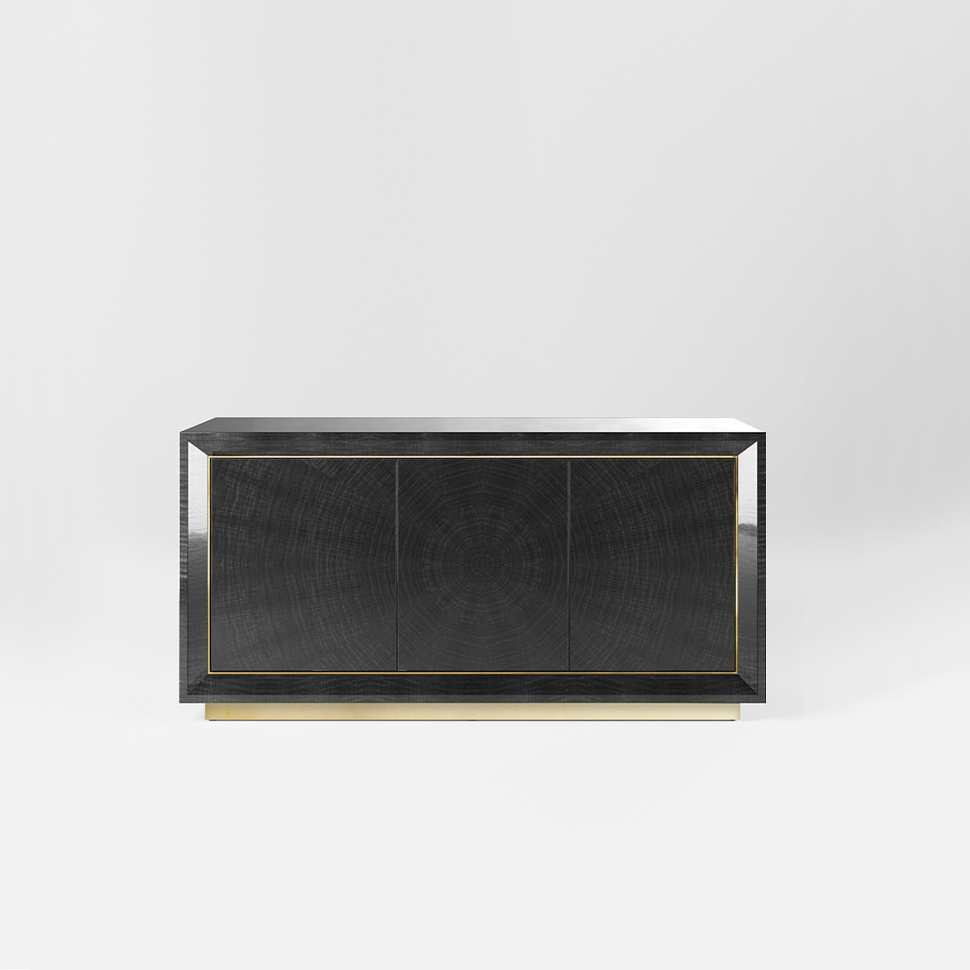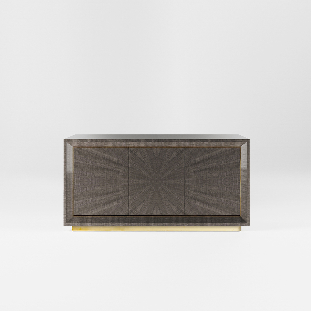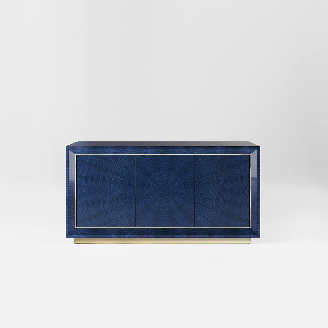 The Three Door Chiltern side cabinet is a long-standing favourite with Davidson clientele with its signature clean lines and beautiful finishing, including a chamfered edge detail and polished metal trim crafted to the highest degree of excellence. Made by hand in the Davidson British workshop, the cabinet boasts flawless high gloss and satin timbers options with a luxurious choice of metals to choose from.