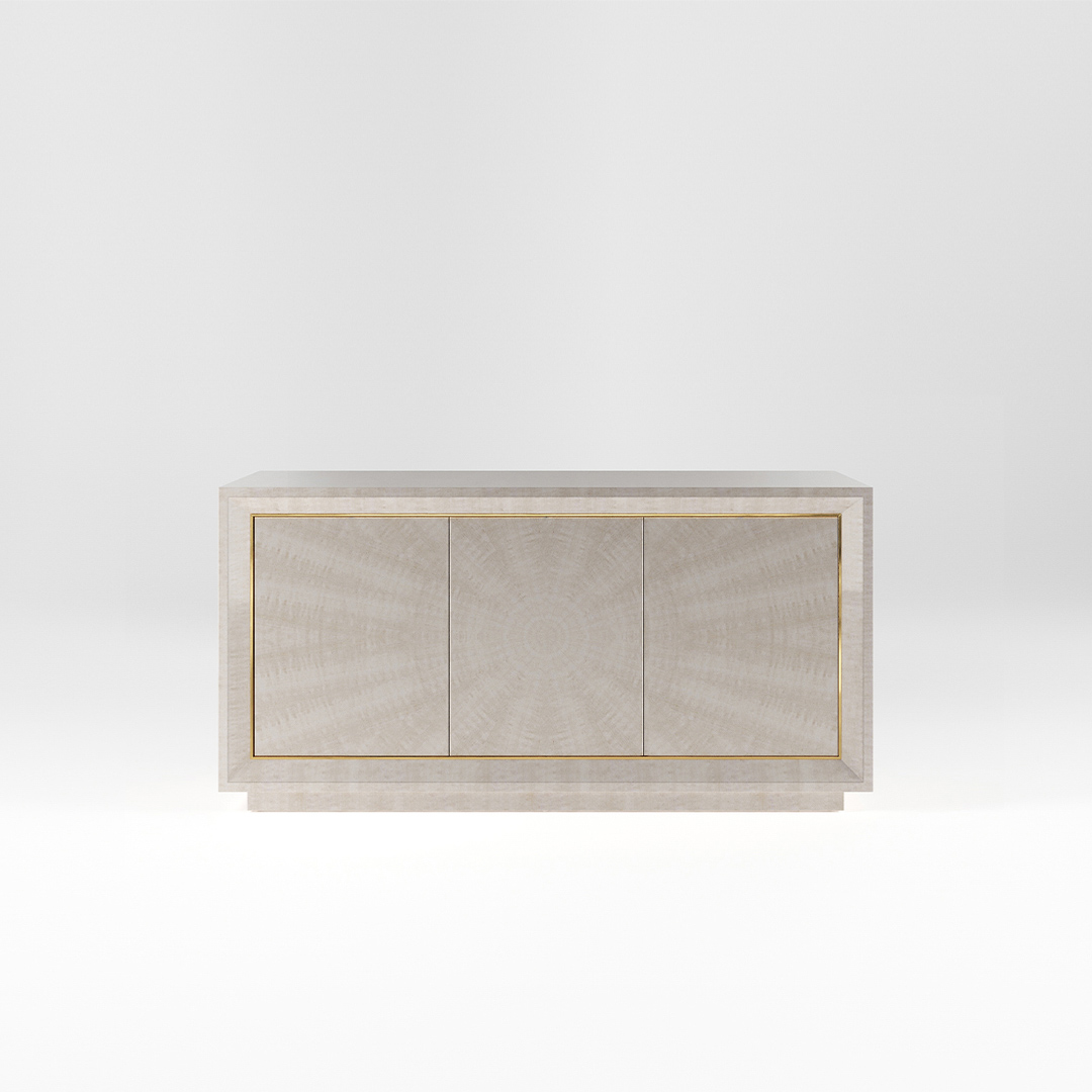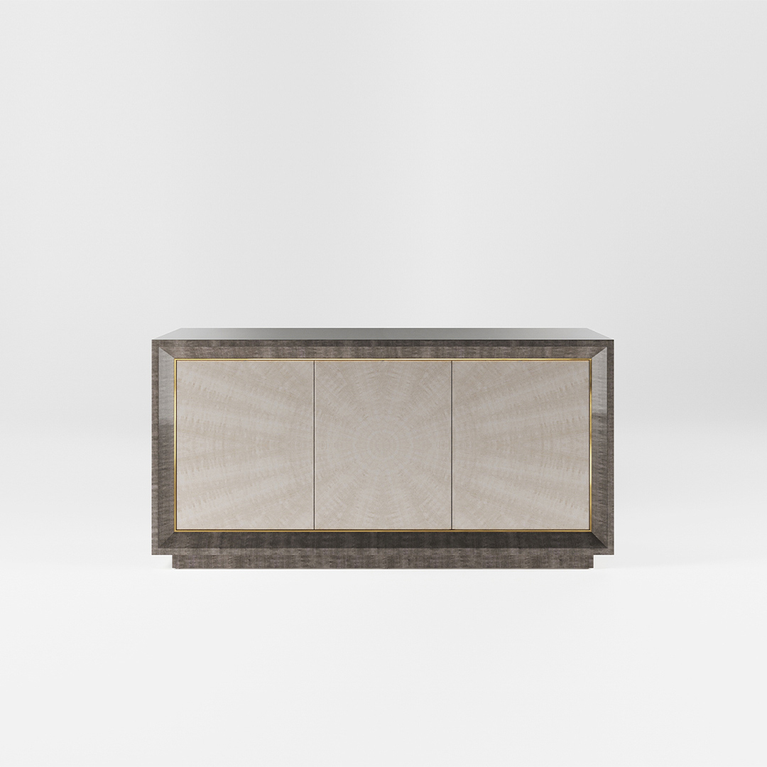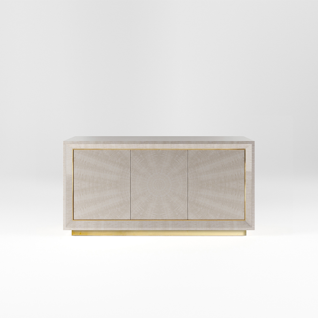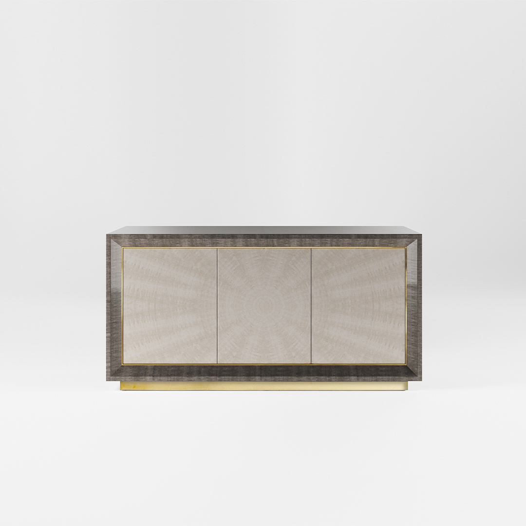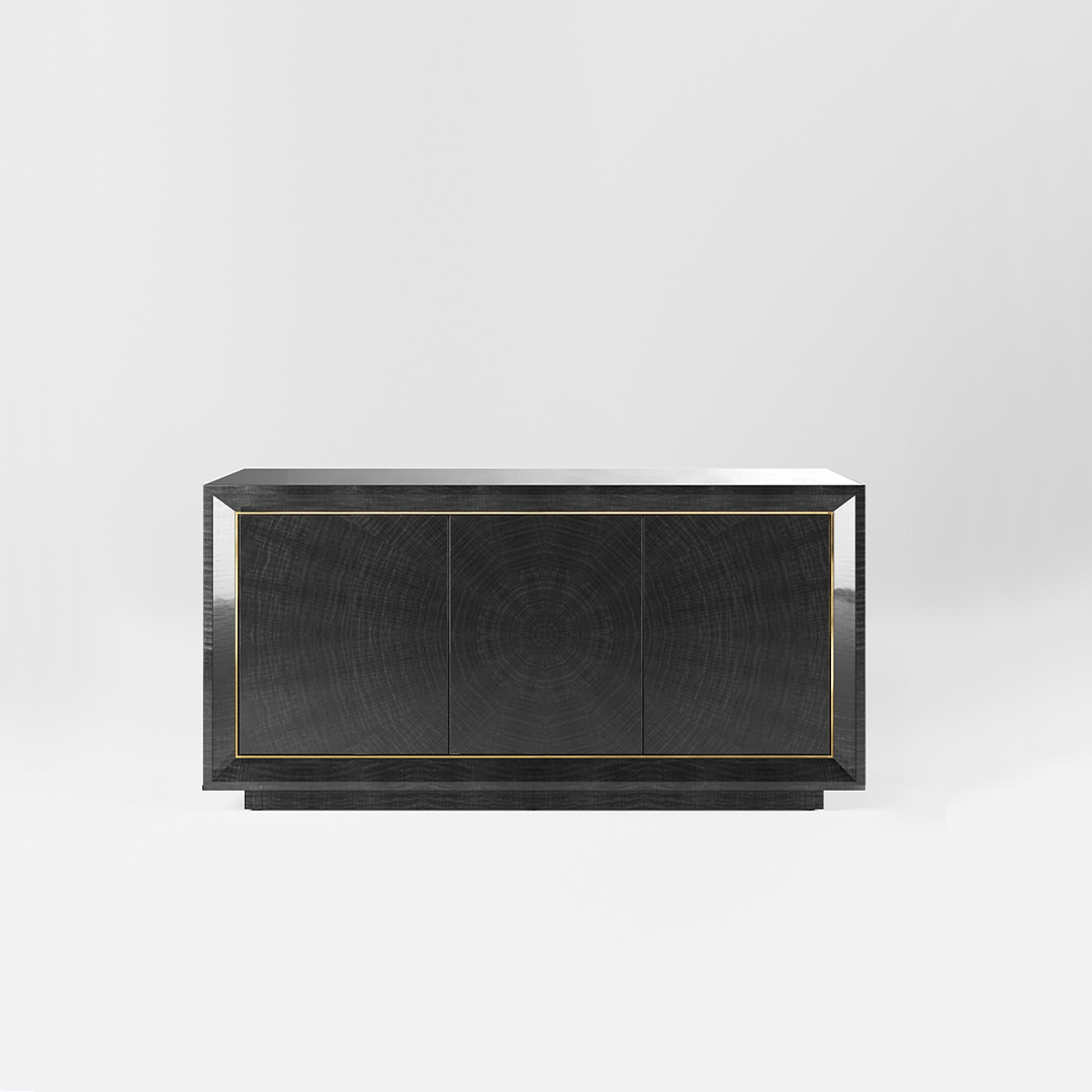 The Three Door Chiltern side cabinet is a long-standing favourite with Davidson clientele with its signature clean lines and beautiful finishing, including a chamfered edge detail and polished metal trim crafted to the highest degree of excellence. Made by hand in the Davidson British workshop, the cabinet boasts flawless high gloss and satin timbers options with a luxurious choice of metals to choose from.