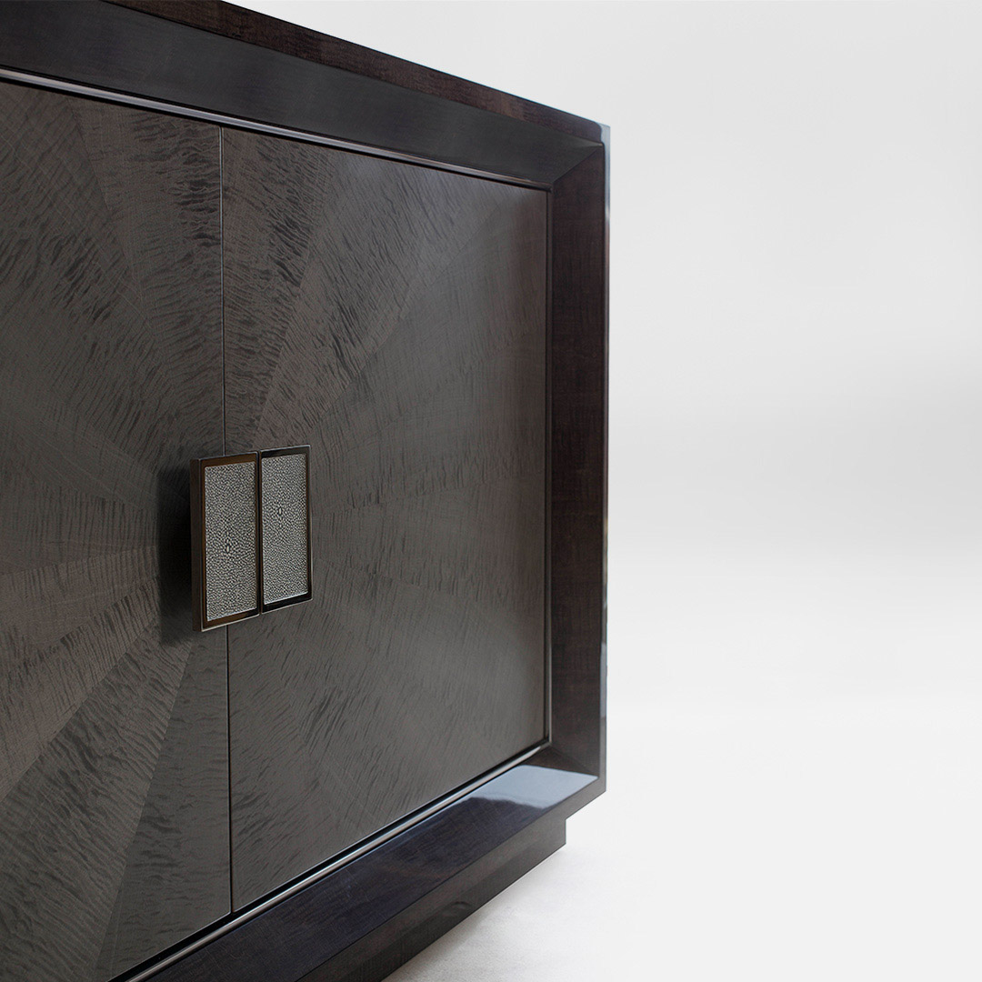 Timeless and tasteful the Hanbury cabinet is sure to create an indulgent interior. Finished in any of DAVIDSONs lustrous finishes, the highlight of this cabinet is the eye-drawing radial pattern to the doors and the opulent polished nickel handles that have a shagreen inlay.
